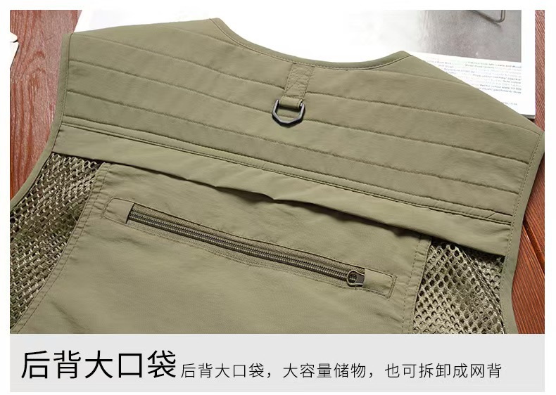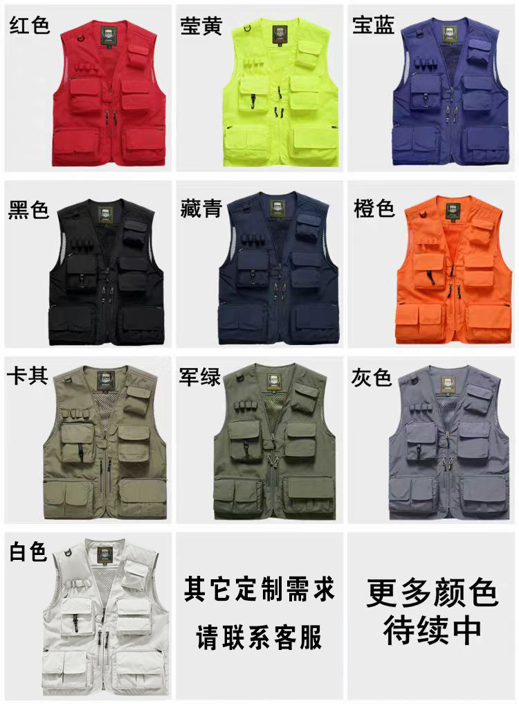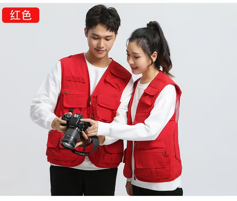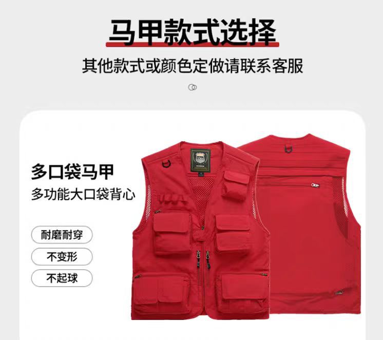多ポケットボランティアジッパーベスト、ロゴ印刷カスタム、スーパーマーケット撮影専用ベスト、作業服、広告シャツ