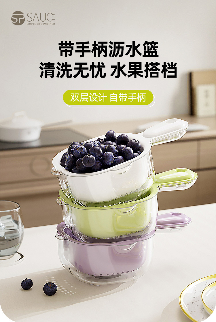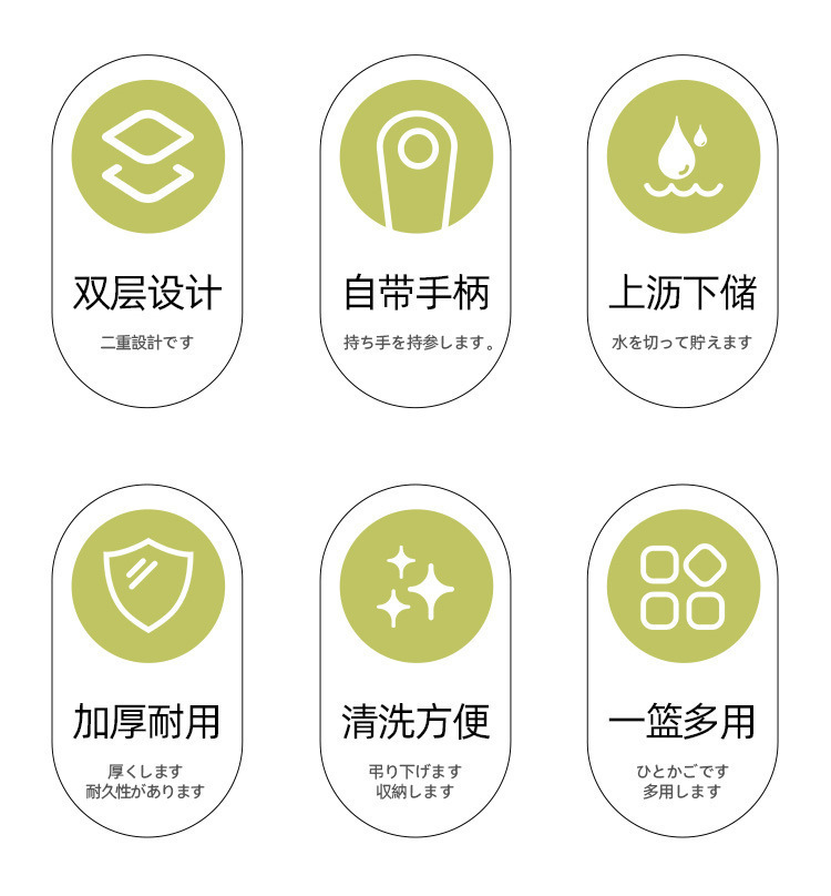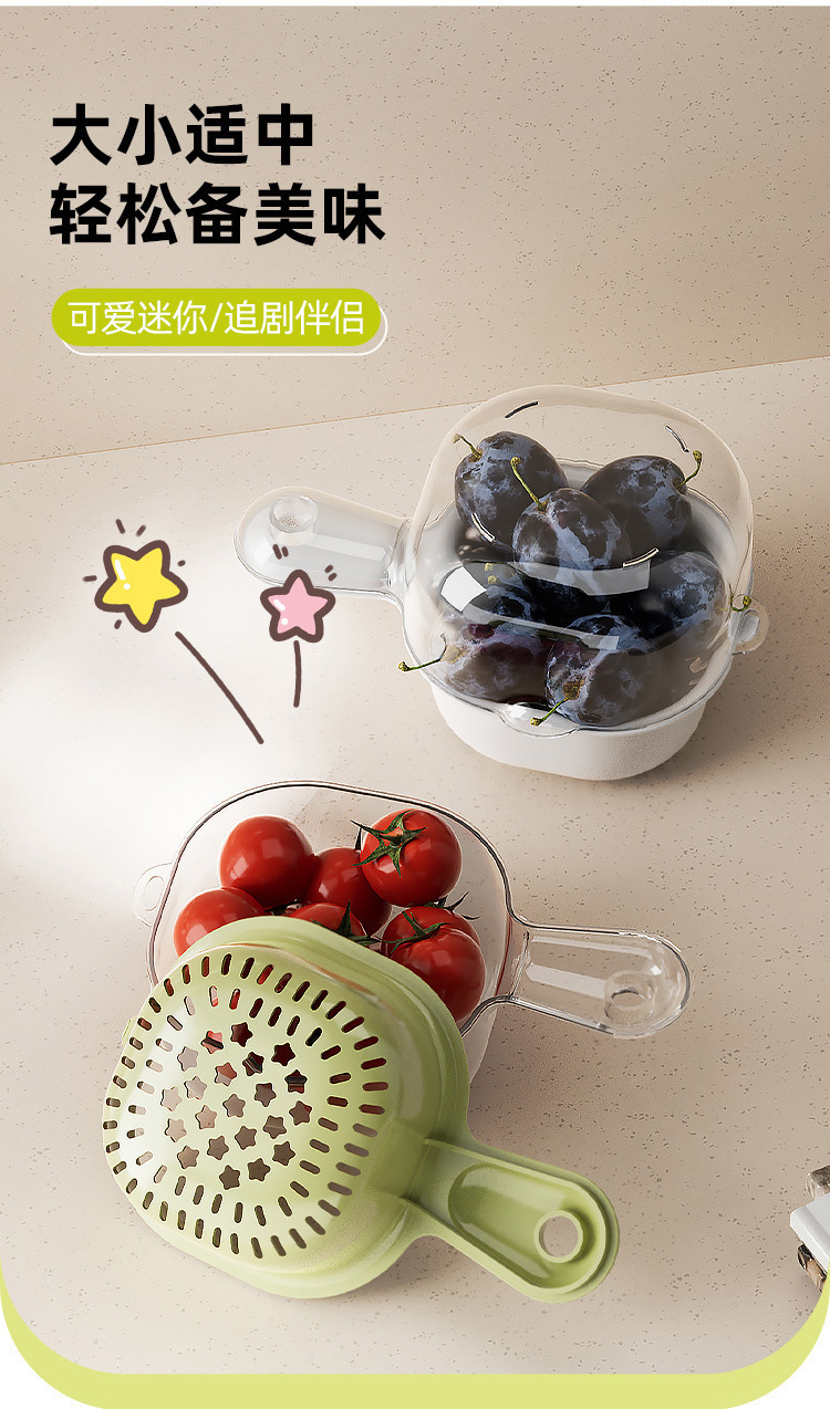 ハンドルの水たまりのかごの二重は果物の神器の水たまりの台所の家庭用の新しい水のかごの精巧な小さい果物の皿を洗います。