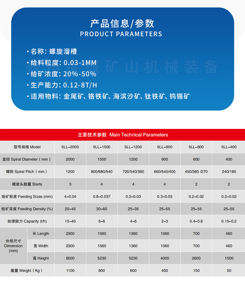 選鉱ガラス鋼スパイラルシュート尾鉱回収5LL-1500水衝式戻り石炭泥タングステン金選別