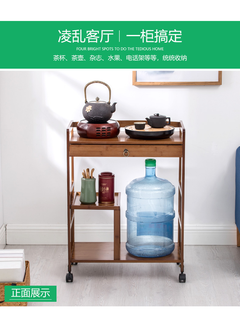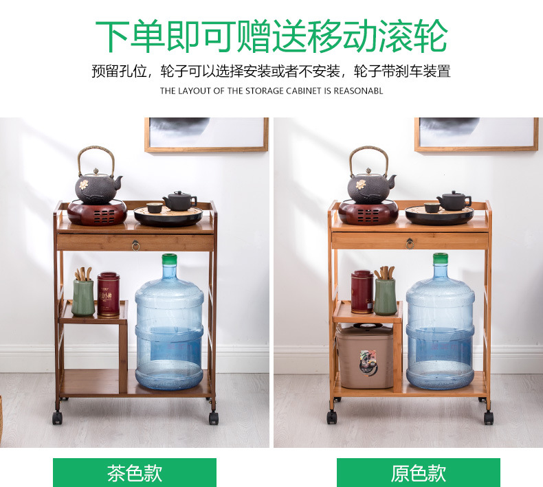 車の食事のそばの3階の多機能車楠竹のお茶の小さい車の台所の物置棚の移動の食事車の酒と水の車の家庭用