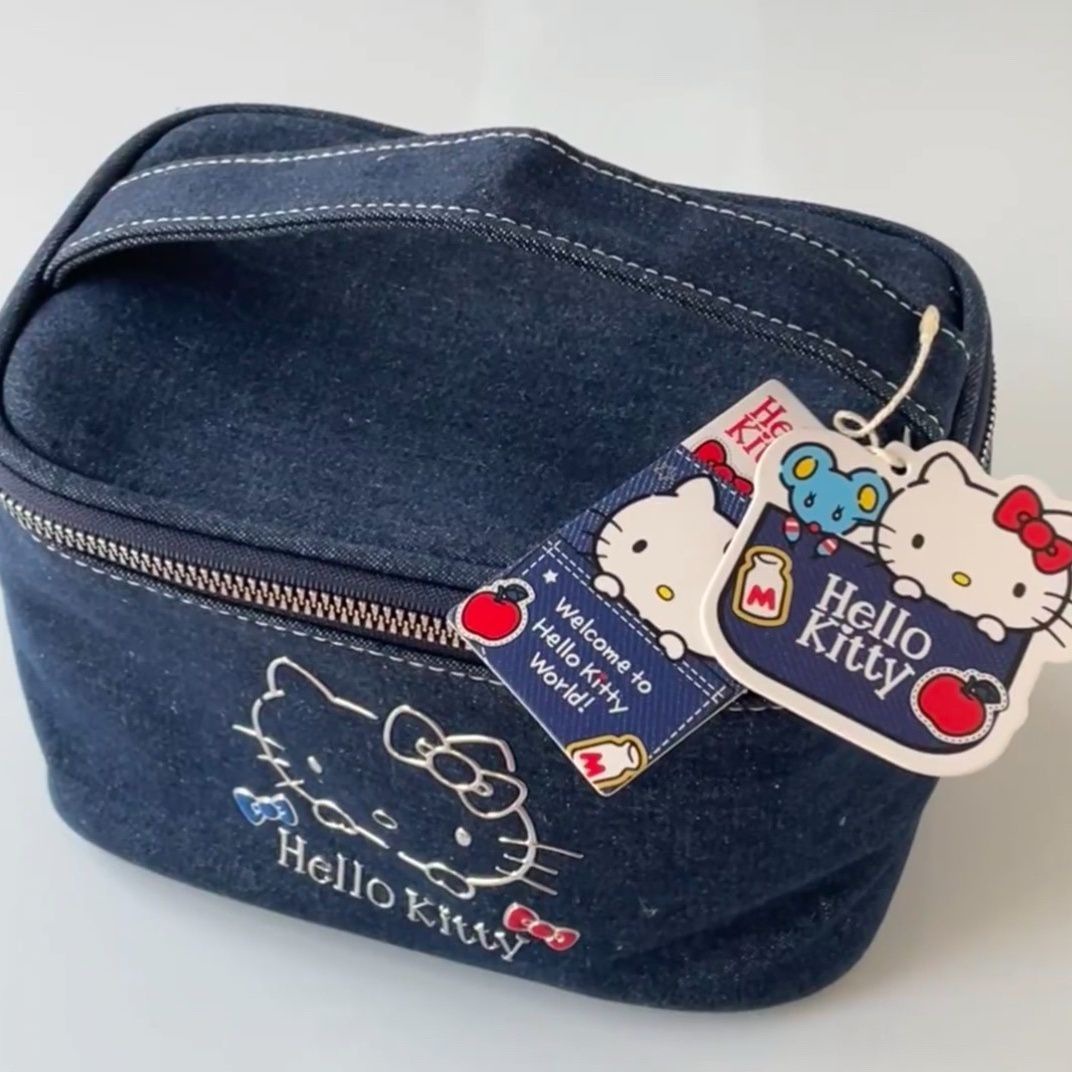 デニムバッグキティ猫収納袋多用途大容量口紅ヘッドフォン収納袋ポータブルポータブル化粧品バッグ