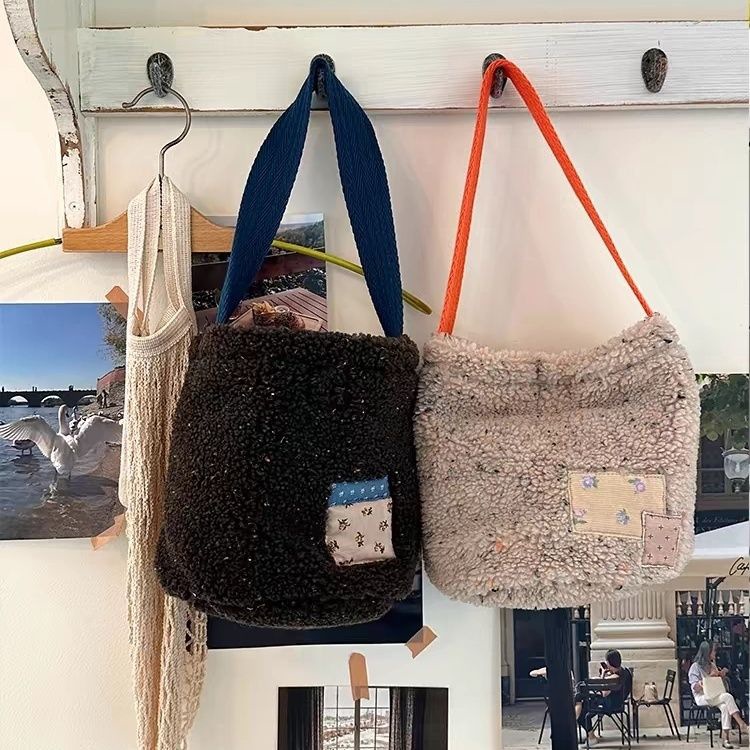fafamarket韩国进口小水桶包自制小众加绒单肩包冬季时尚休闲女