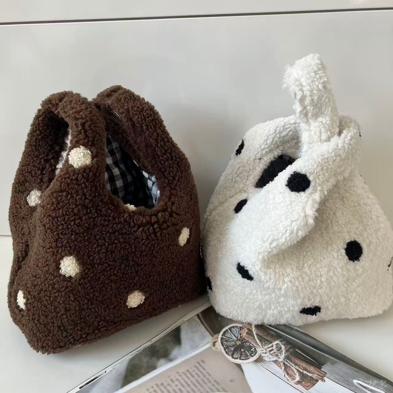 2025秋冬可爱新款手提包日系羊羔包波点通勤拎包