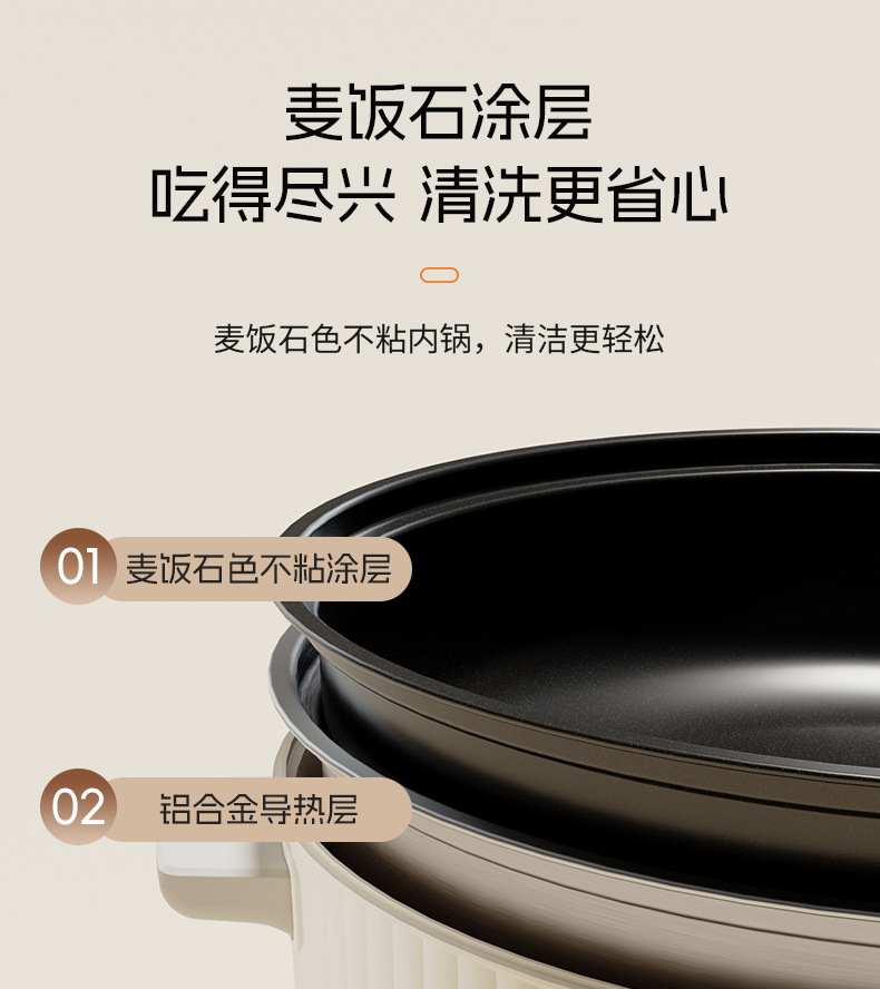 AUX/オークス 電気鍋 4L~6L 家庭用電気鍋一体型 多機能 大容量 多機能ノンスティック電気鍋