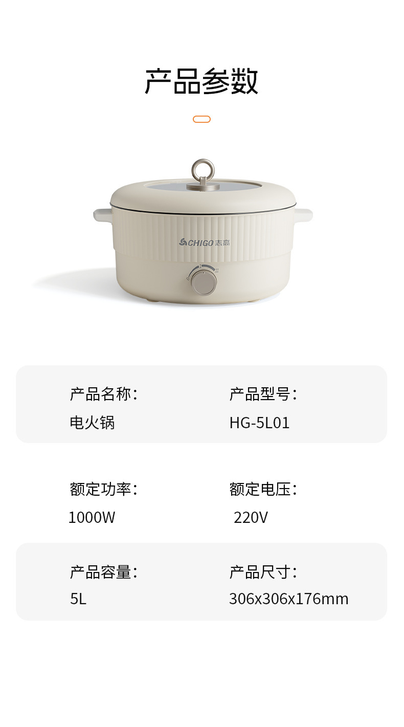 志高電気鍋5L寮用大容量電気鍋、炒め物、電気鍋、ノンスティック鍋、しゃぶしゃぶ、両用、空焚き防止