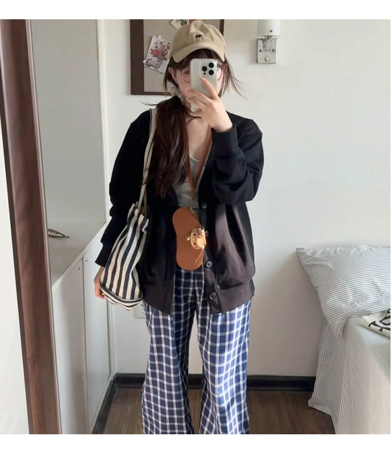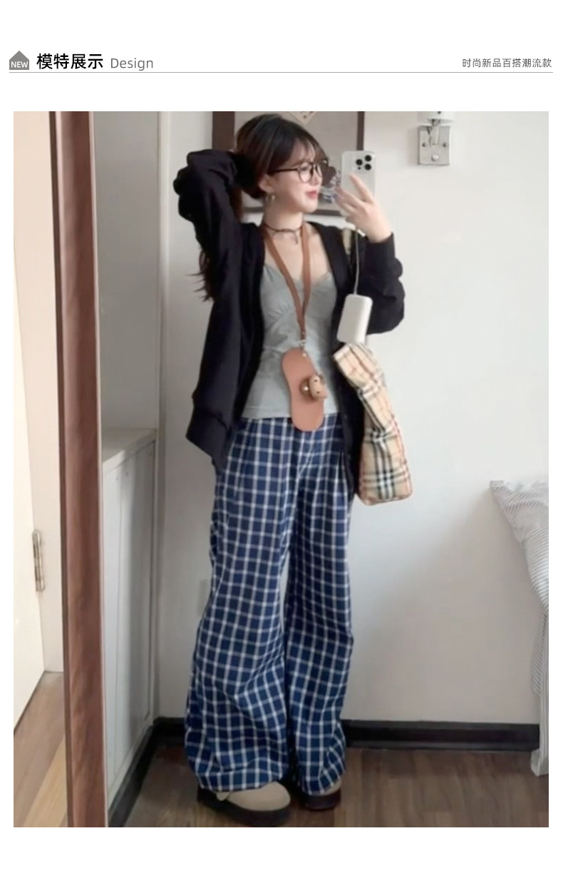 Zhao Lusi チェック柄ワイドレッグパンツ女性用 2025 春と秋の新しいハイウエストレイジースタイルルーズウォーキングフロアレングスパンツ通勤用