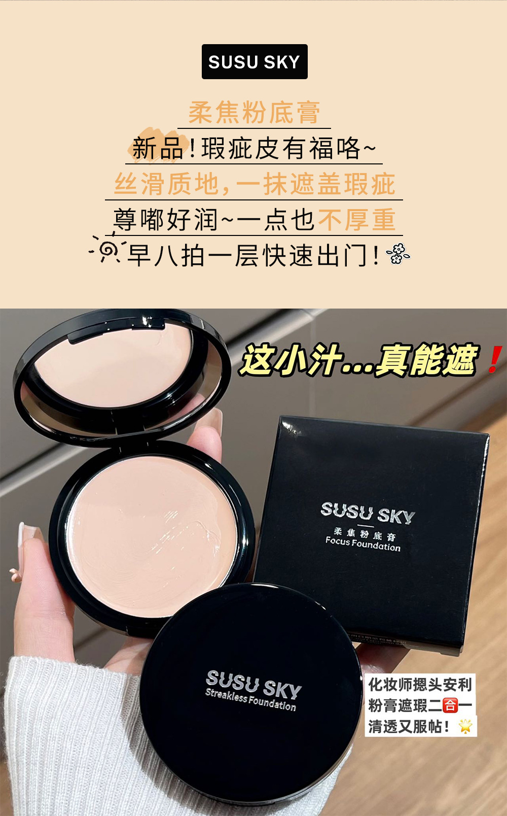 SUSU SKY柔焦粉底膏遮瑕膏强力遮盖斑点脸部痘印痘痘黑眼圈粉底膏