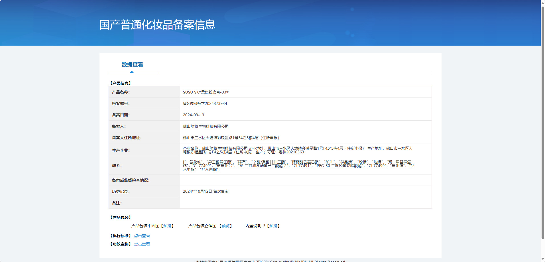 非特殊化粧品登録証番号 広東Gメイクアップネットワーク準備番号 2022328972