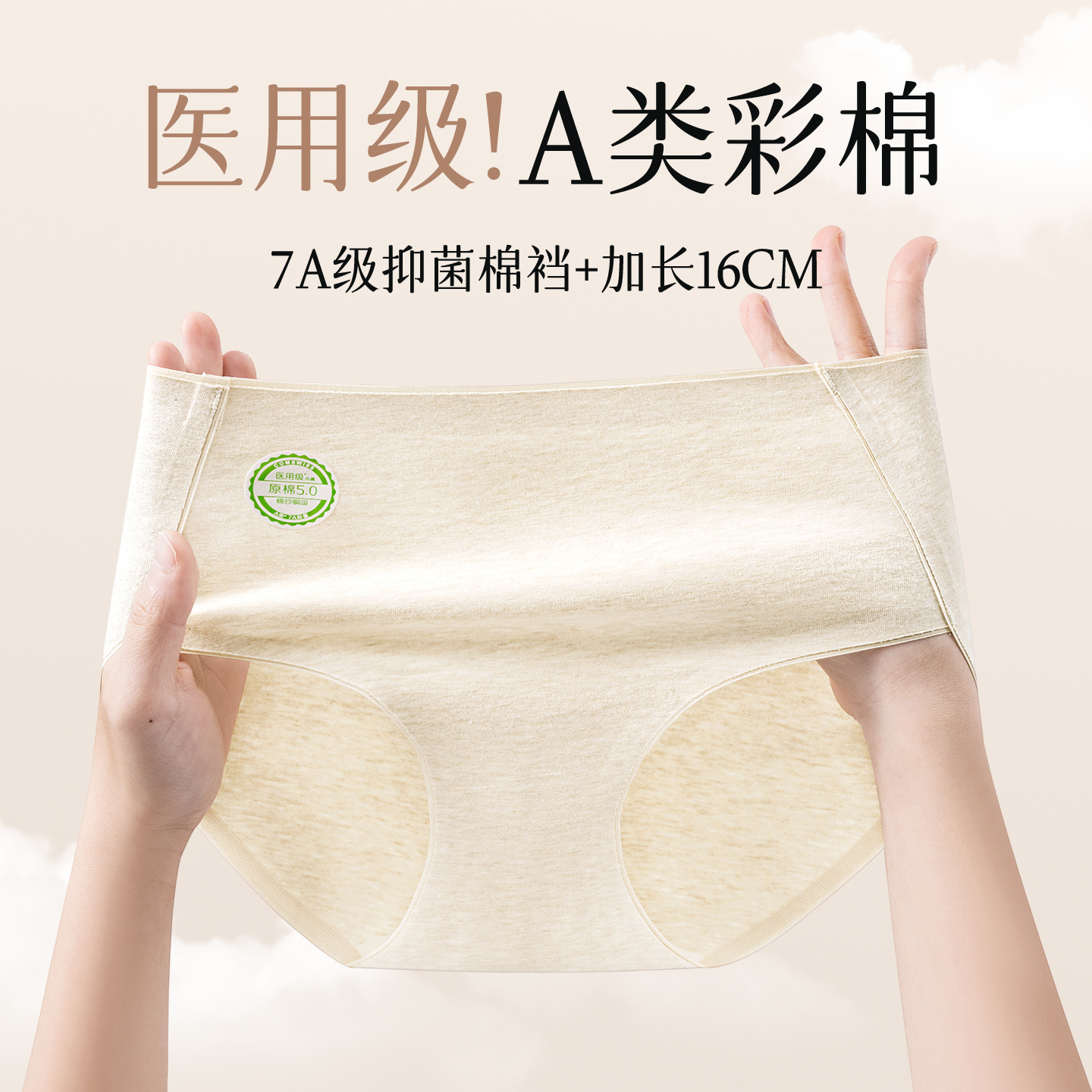 天然彩棉女士内裤2025新款加长抗菌裆医用彩棉大码中腰无痕三角裤