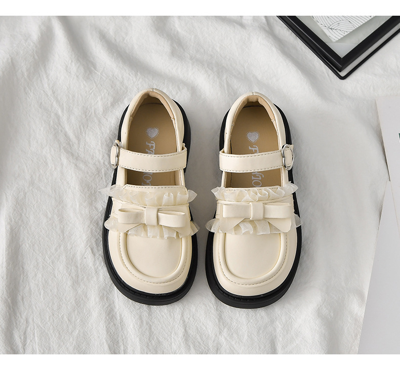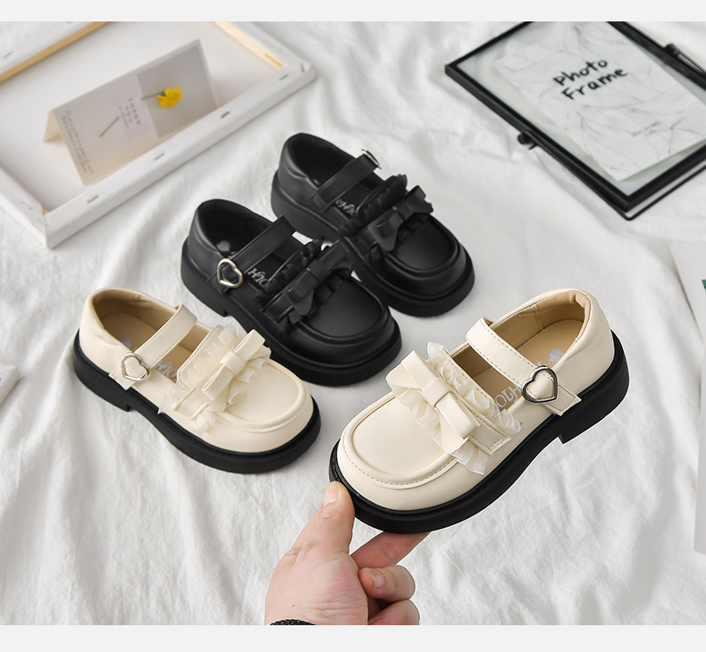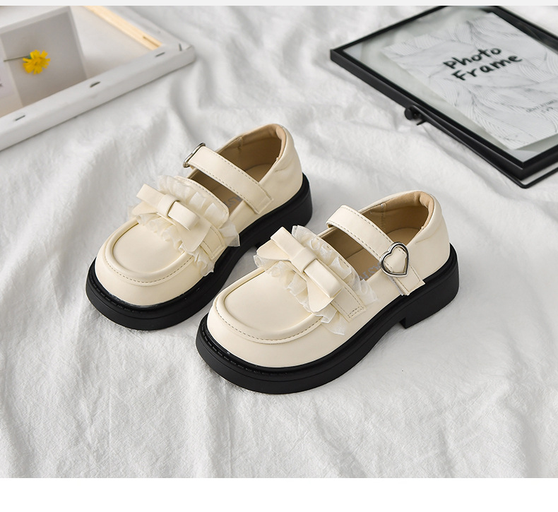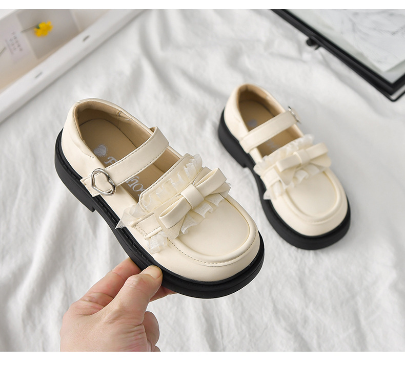 2025春秋の新型の女の子の小さい靴の韓国版の蝶結びのレースの王女の靴の柔らかい底の中で大きい子供の豆の靴