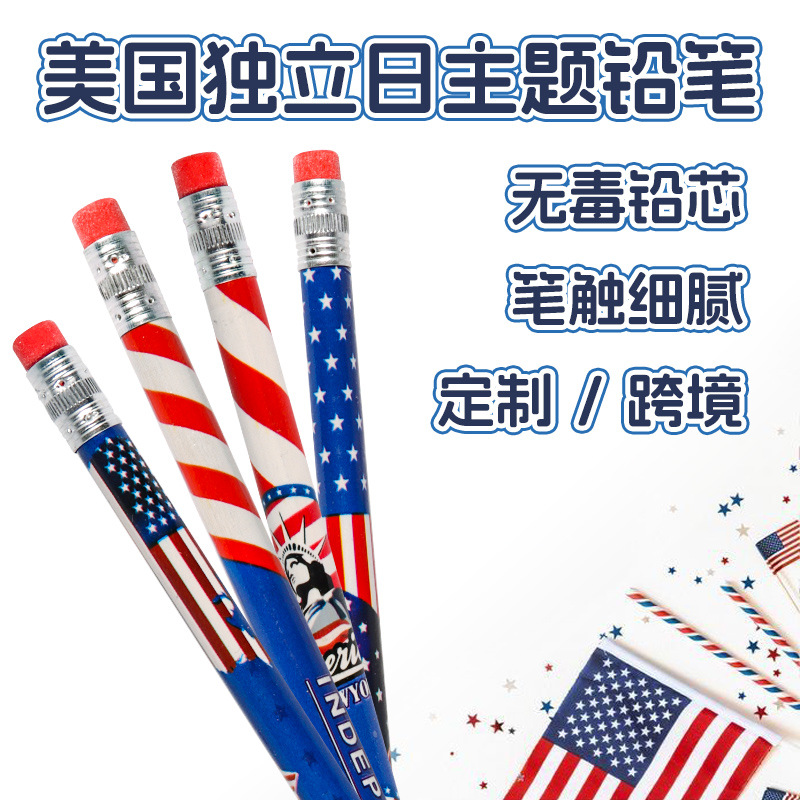 铅笔小学生hb美国国旗元素带橡皮头圆杆儿童绘画写字套装涂鸦彩铅
