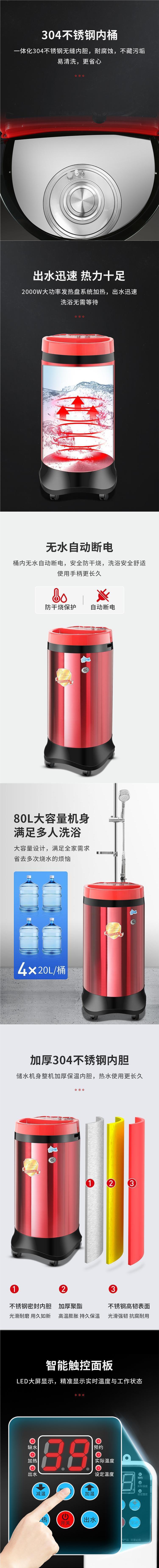 スマート風呂機家庭用移動式は熱式大容量電気温水器です。
