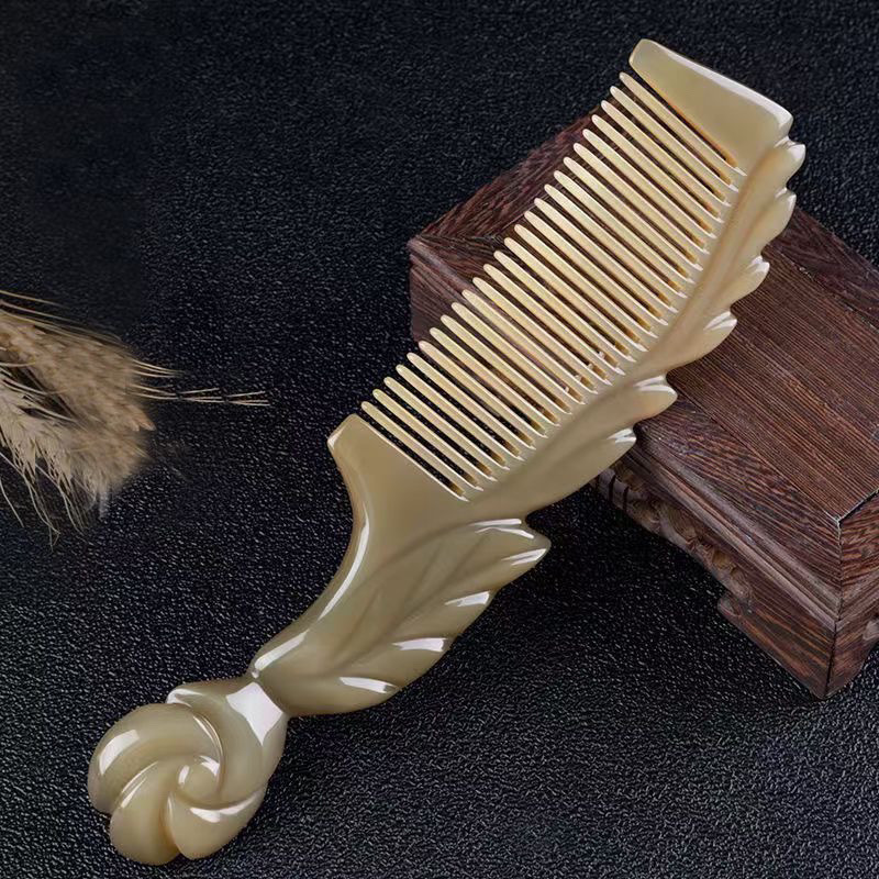 新型天然緑紋牛筋櫛経絡マッサージ櫛薔薇精雕さん専用長髪耐久家庭用櫛