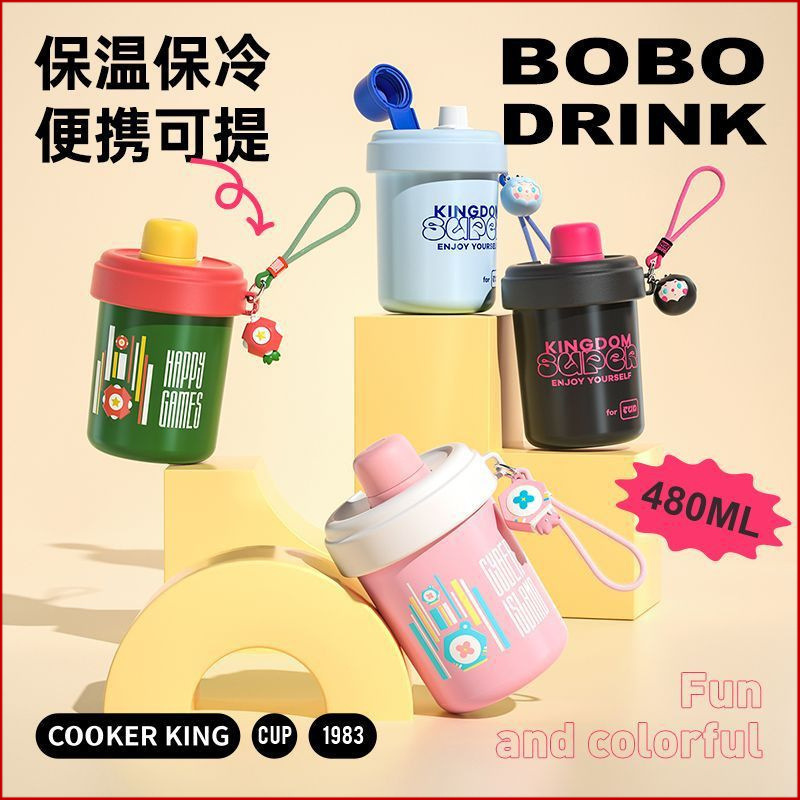 炊大皇保温コップ陶磁器内胆カップ可愛い女子学生高颜値児童ストロー学生携帯コーヒーカップ