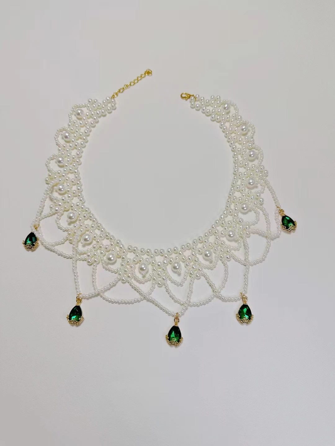 尾児唐製明製タータン襟飾りレトロ風流蘇水滴ペンダント真珠ソフトロック漢服ネックレス