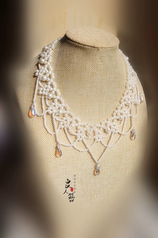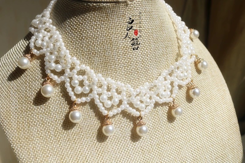 尾児漢服ネックレス唐製明製タン襟アクセサリーレトロ風流蘇水滴ペンダント真珠ソフト