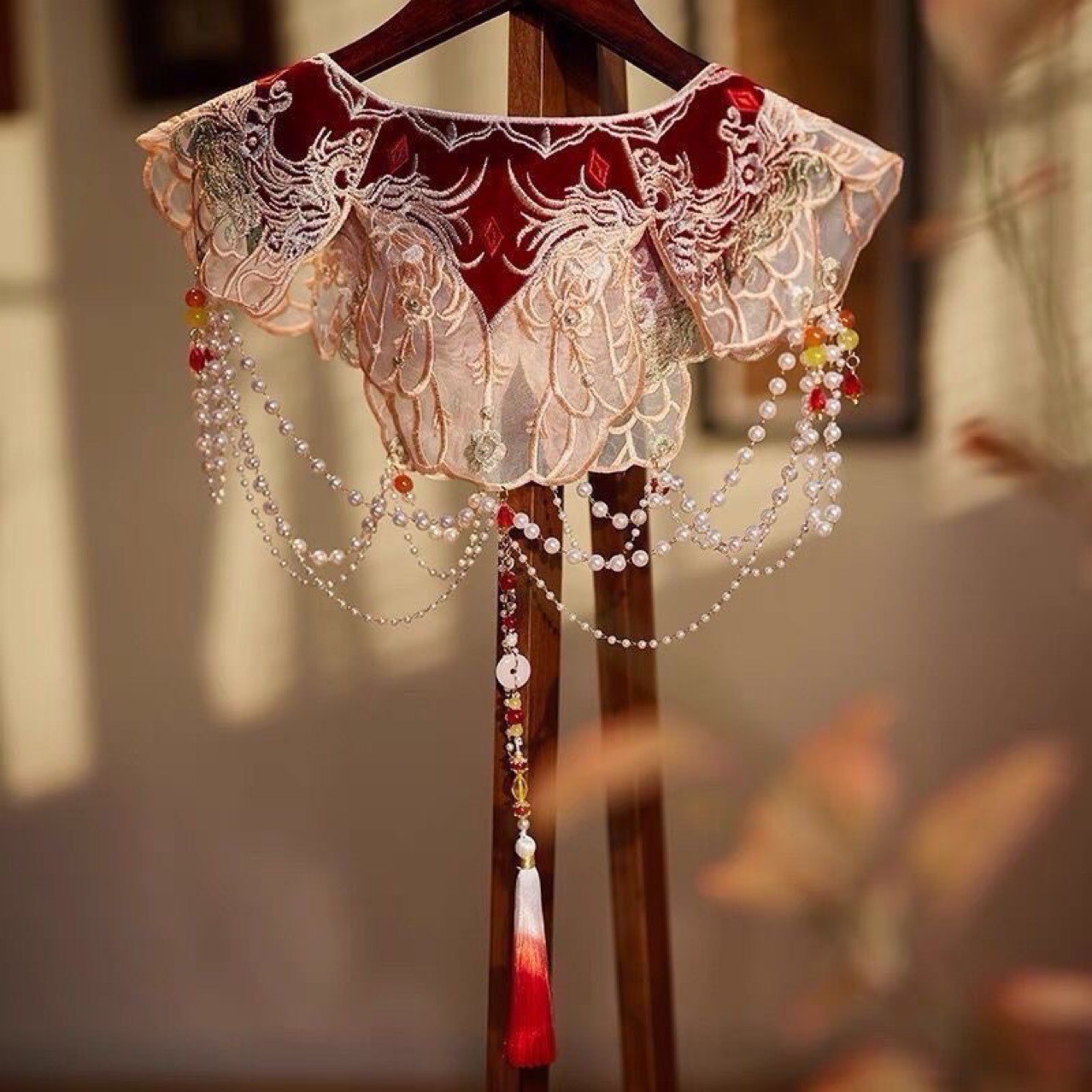 汉服云肩明制蕾丝披肩流苏珍珠假领古风旗袍配饰国风坎肩少女款