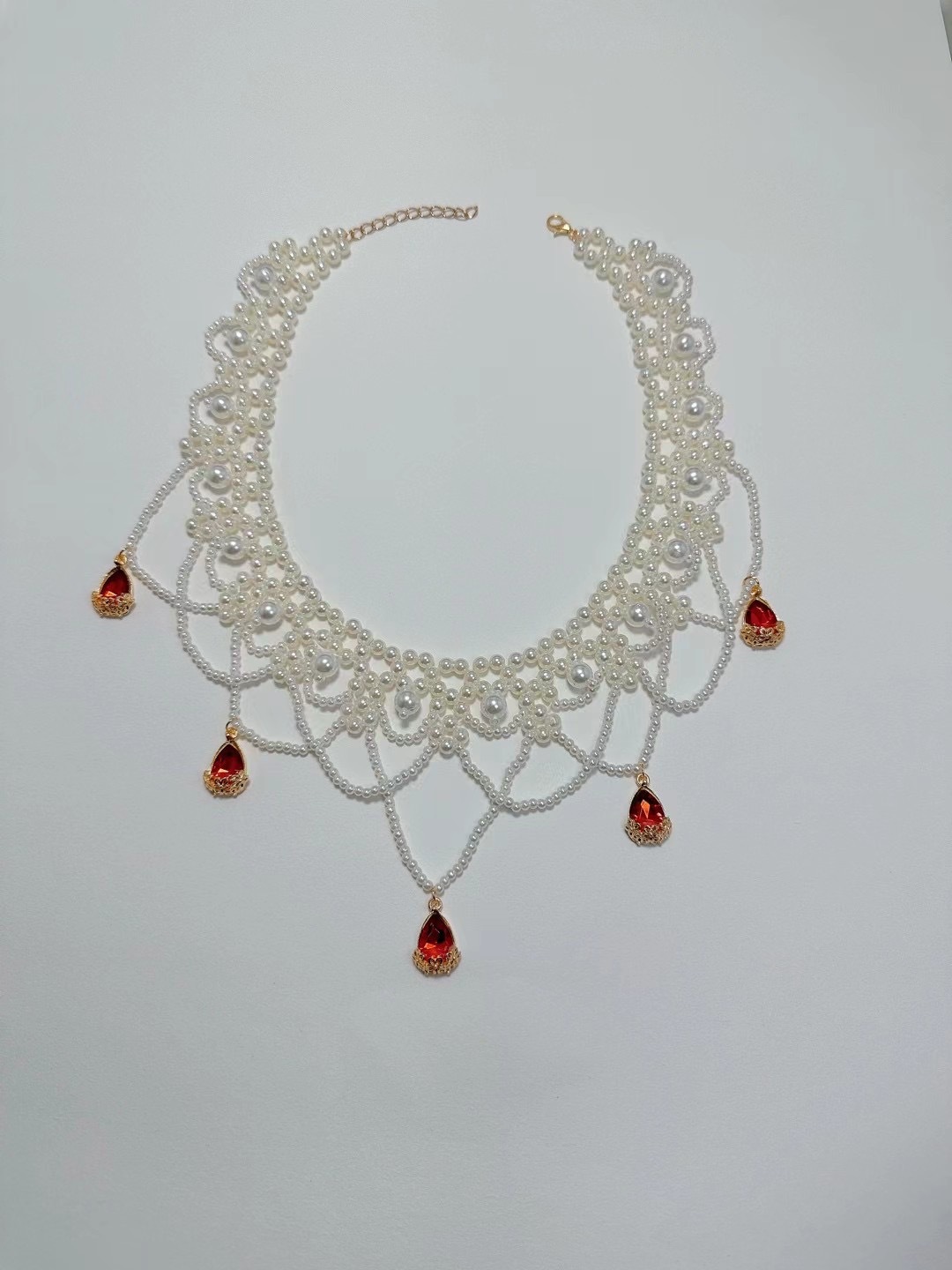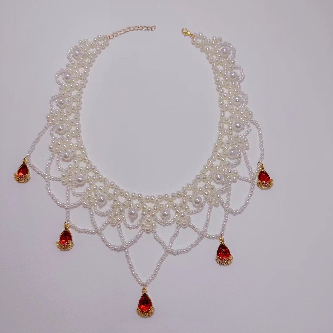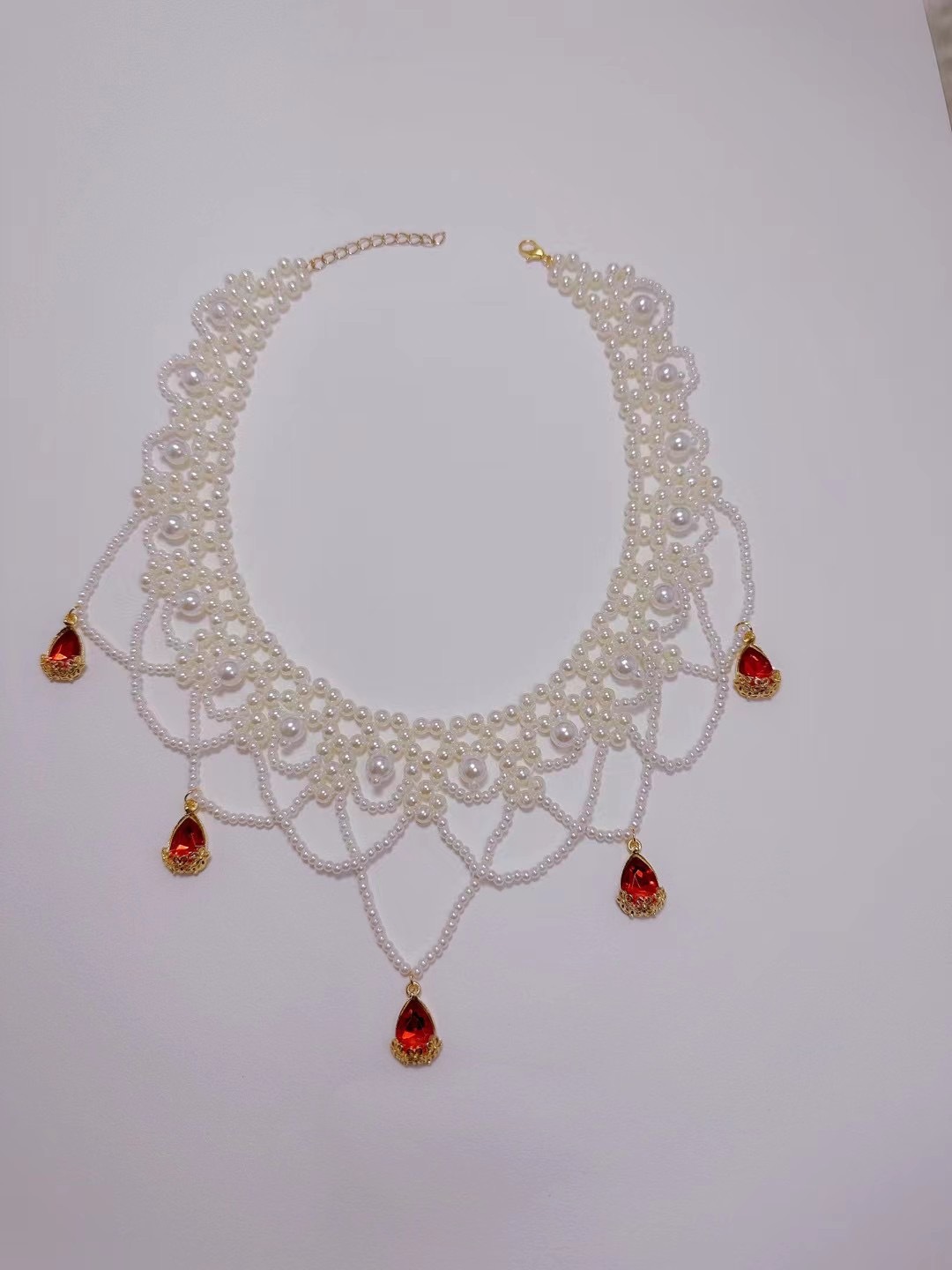 手作りの小さなネットの赤いスカートの気質に合わせて首のチェーンを編んでチェーンを編みます。
