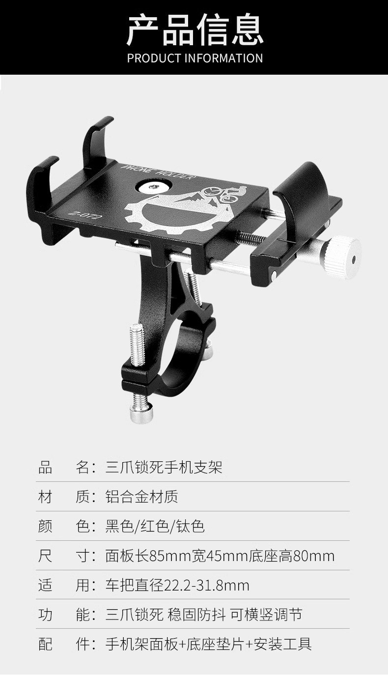 3本爪サイクリング携帯電話ホルダー [ブラック],3本爪サイクリング携帯電話ホルダー [レッド],3本爪サイクリング携帯電話ホルダー [シルバー]