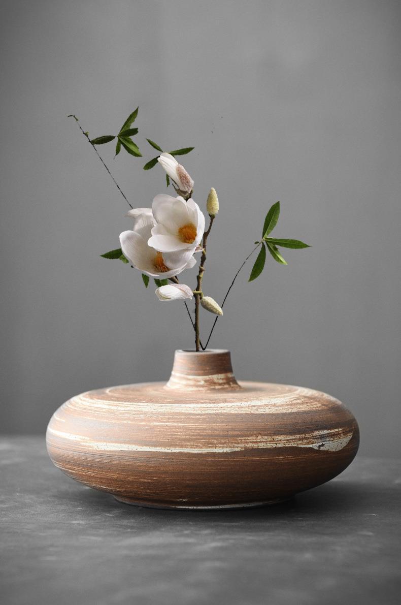 日本式の粗い陶器の花器の手作りの日用装飾の花瓶の置物のアイデアのアロマボトルの禅意の花道の大きいサイズの花の挿し込み