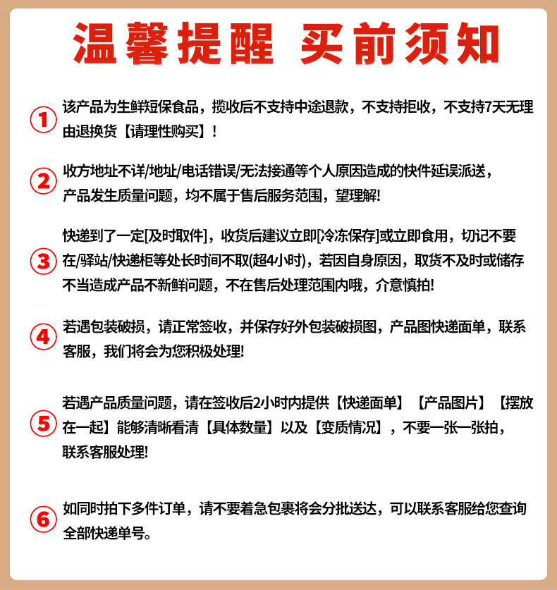 感谢亲亲的信任,由于食品类目的特殊性,为了食品安全着想,产品不支持7天无理由退换货,特别是冷冻食品,不支持拒签和退换货,希望大家能够理解