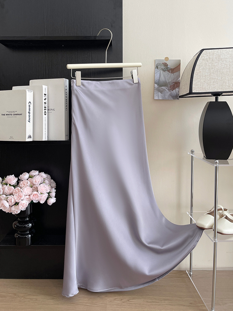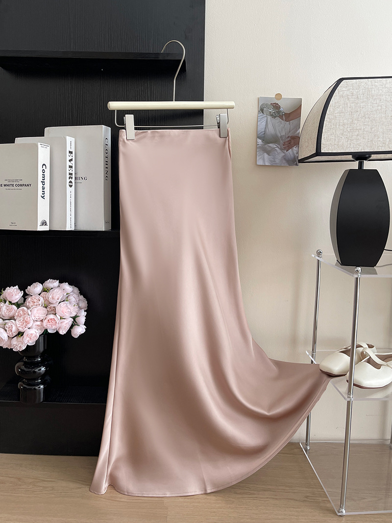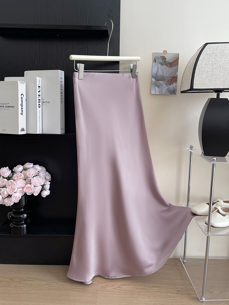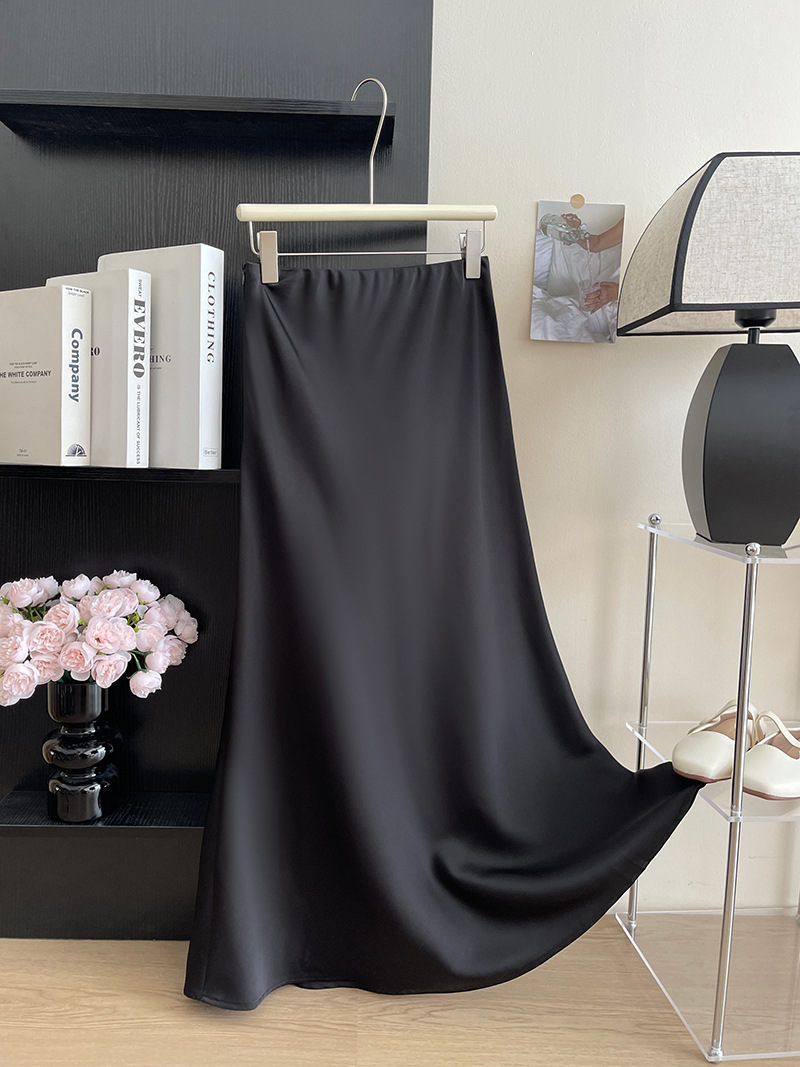 ハイウエストスリムミドル丈スカートレディースアセテートサテンヒップフィッシュテールロングスカート2025春夏ドレープスカート