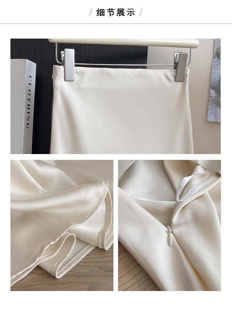 高級感気質酢酸サテンの尾のスカートは柔らかくて、半身のスカートは春夏に肉を遮って痩せています。