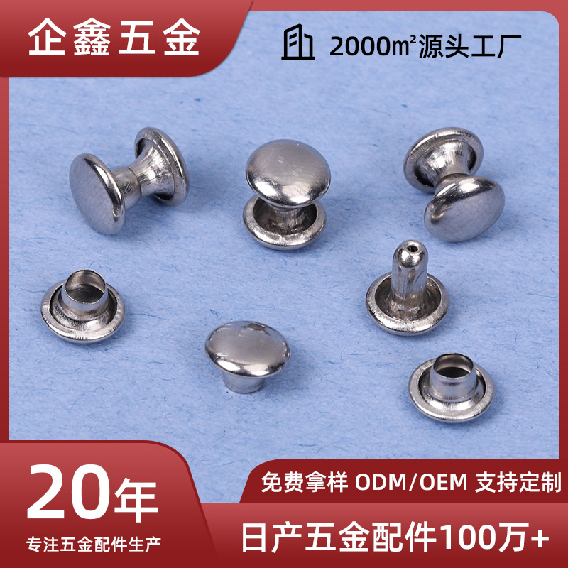 工場在庫金属鉄両面リベット、片面リベット、キャップリベット、DIY手作りバッグと革製品のバックル