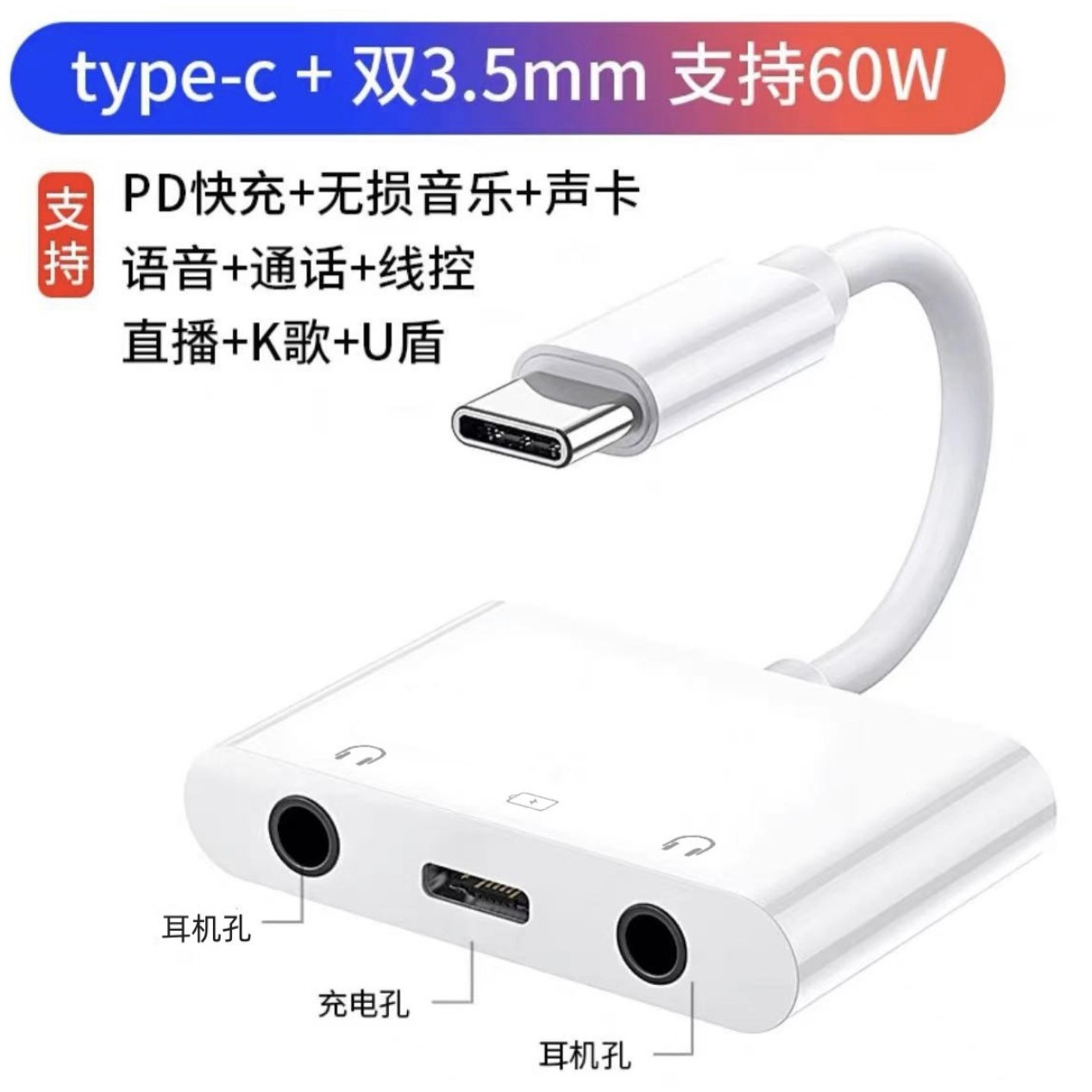 双typec转接头3.5mm三合一转换器pd60w快充适用于苹果15以上系列
