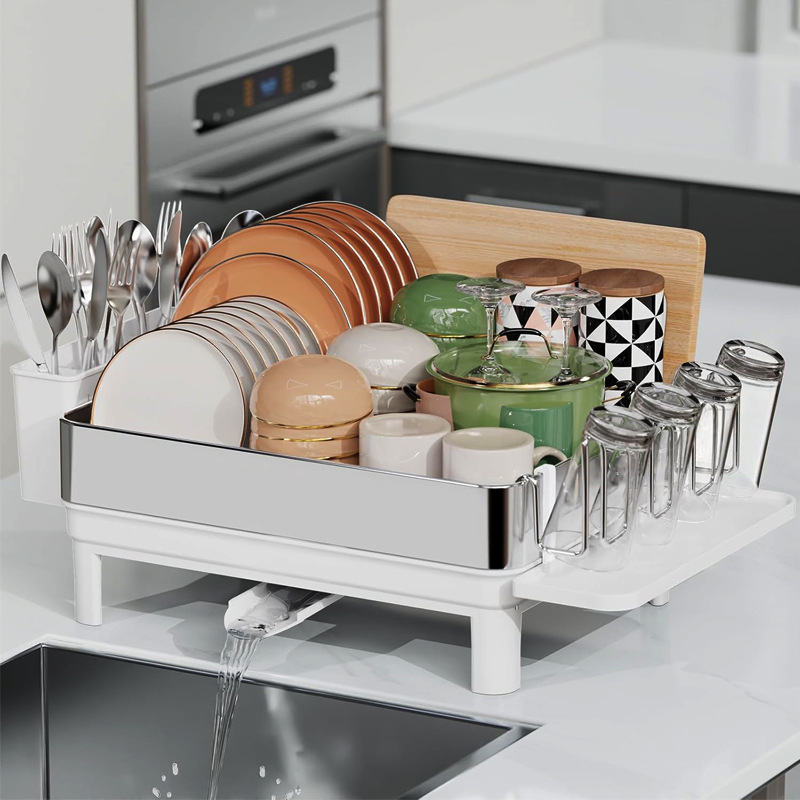 工場厨房用ステンレス製単層水切りラック、多機能食器・カップ収納、軽量高級家庭用シンク上収納ラック