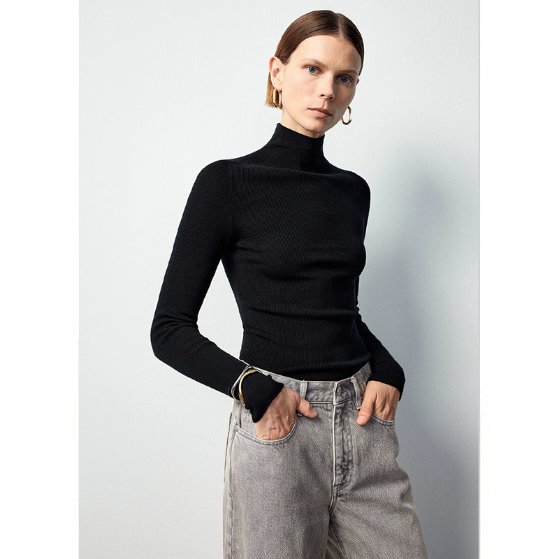 秋冬3/80支黄金羊毛岛精无缝针织高领打底毛衣修身百搭长袖羊毛衫