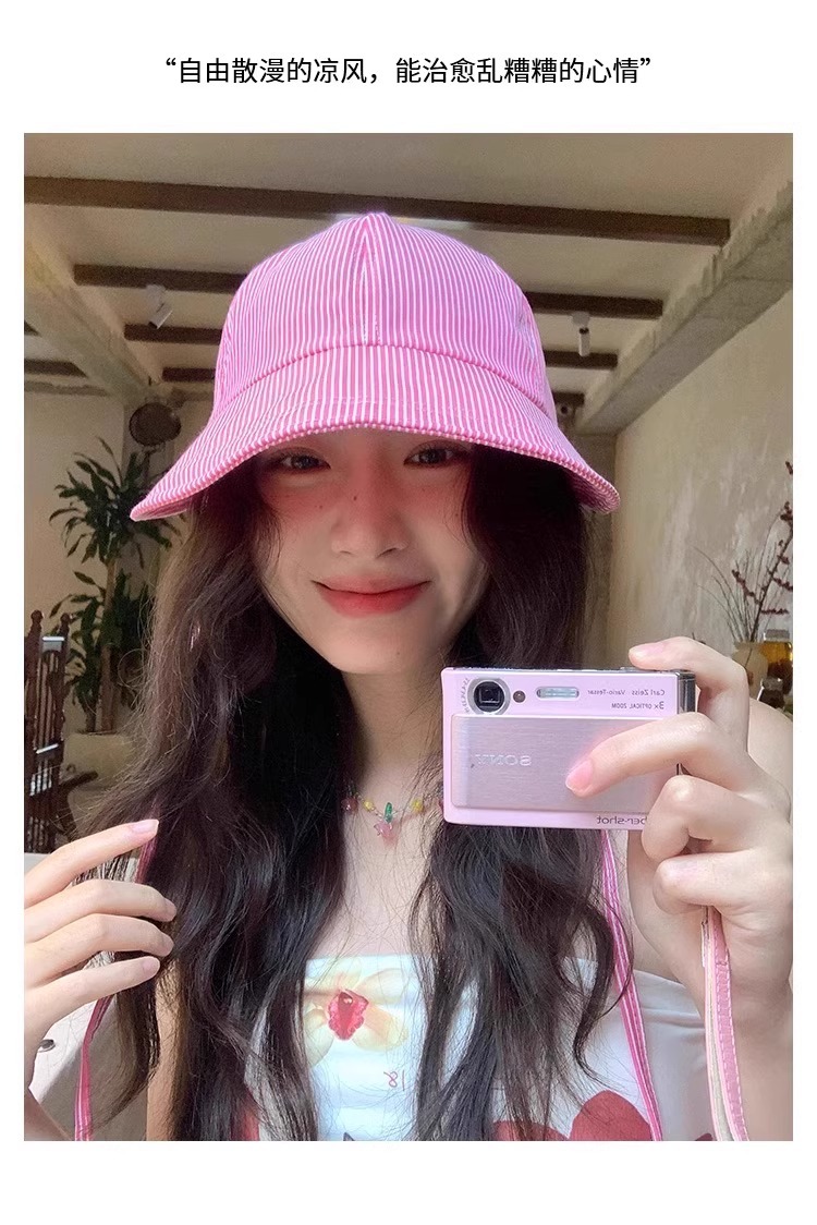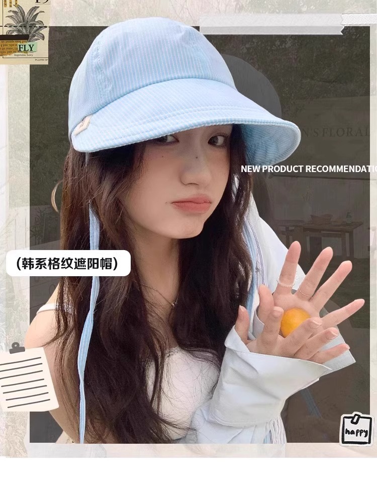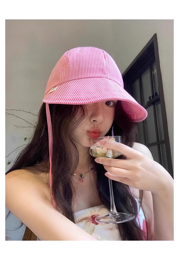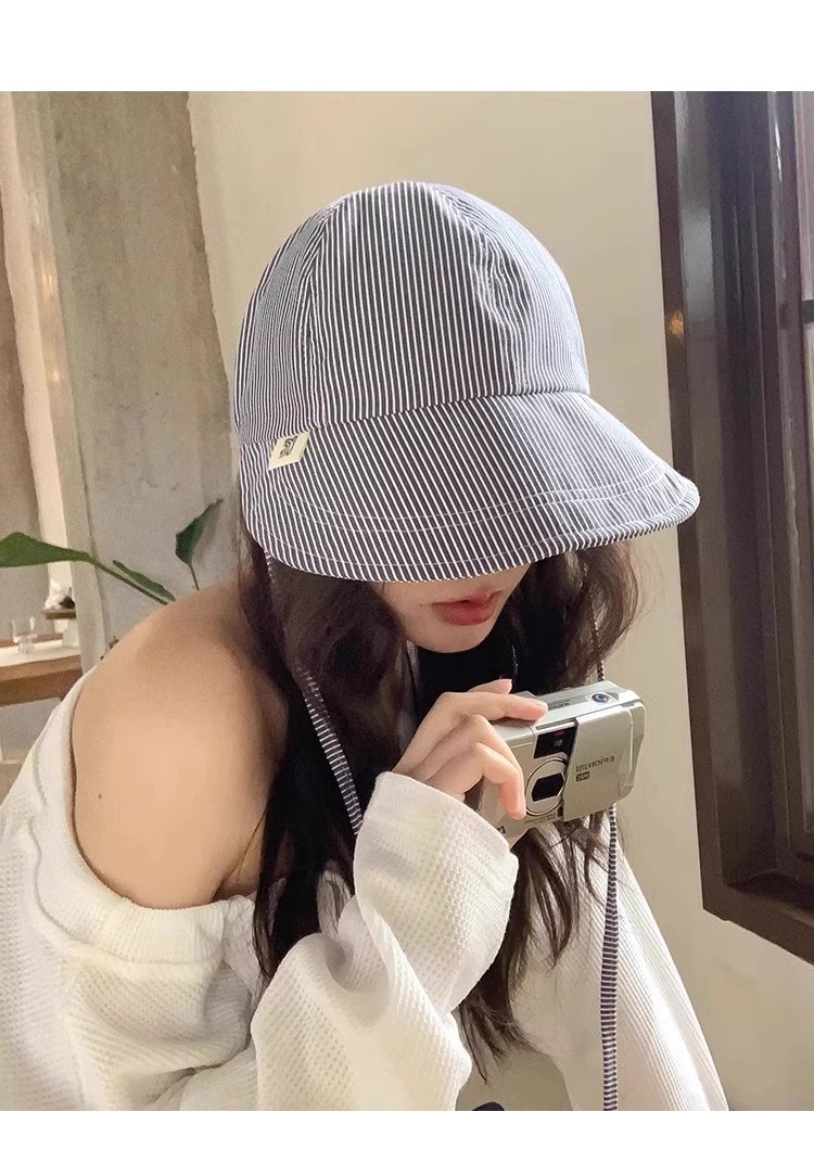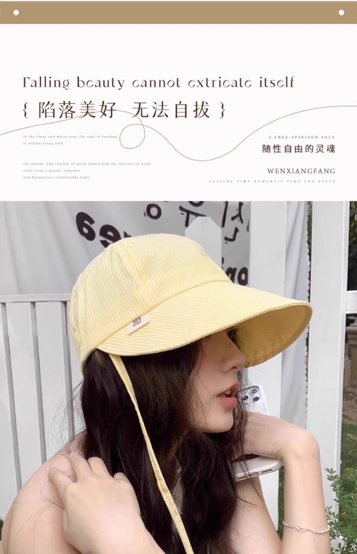 春夏の新型の小さい清新な青いストライプの大きいつばの帽子の女性の夏の顔の小さい漁師の帽子の日よけの盆の帽子の潮