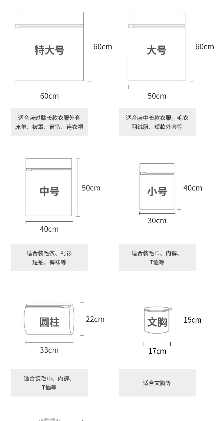 ミニ20*30,Sサイズ 30×40,Mサイズ 40×50,Lサイズ 50×60,特大サイズ 60×60,シリンダー22*33,ブラバッグ 15×17,シェル洗濯バッグ 15*18,6点セット(小・中・大・特大・シリンダー・ブラバッグ),7点セット(小・中・大・特大・シリンダー・ブラバッグ・シェル),ブラバッグ 16×16,5点セット(小・中・大・シリンダー・ブラバッグ),ミニサイズ18×22,4点セット(小・中・筒型・ブラバッグ),6点セット(ミニ、小・中・大、シリンダー、ブラバッグ),Sサイズ 20×30×8,Mサイズ 30×40×8,Lサイズ 40×50×10,特大サイズ 50×60×10,特大サイズ 60×80