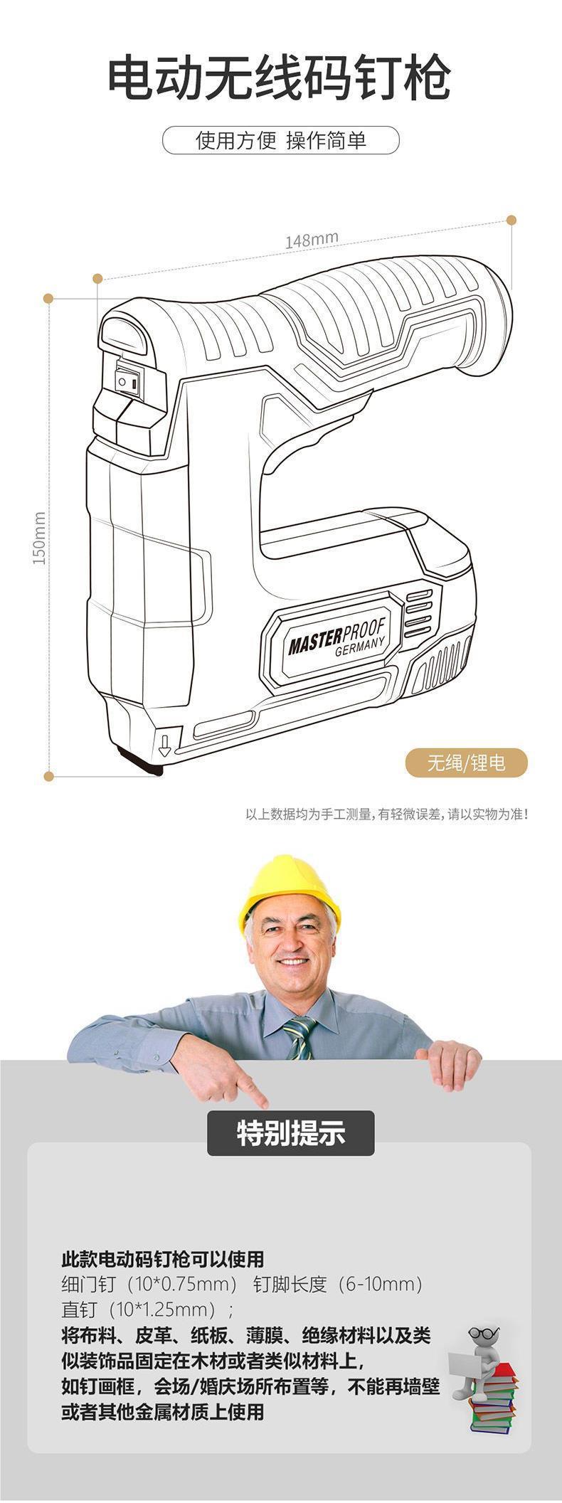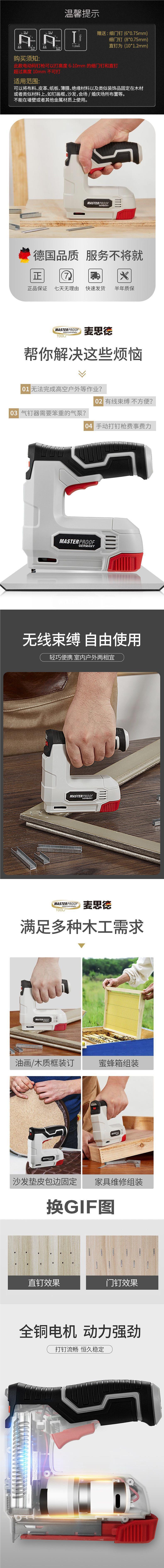 マースの電動の釘の銃のまっすぐな釘のドアの釘の両用の充電の釘の銃の木工の家庭用の釘の銃の強力な釘の銃