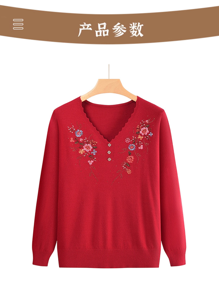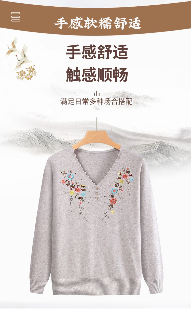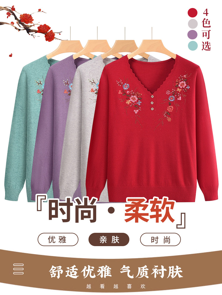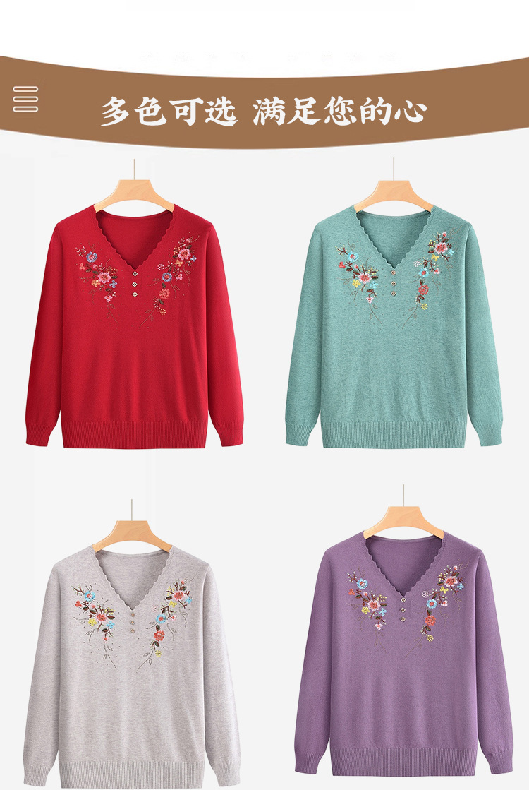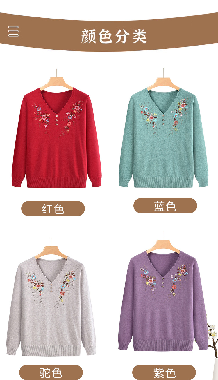 源头工厂洋气妈妈装领绣花针织衫春秋毛衣新款中老年女长袖打底衫