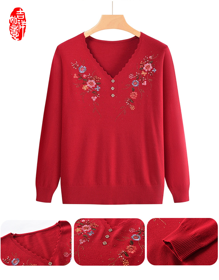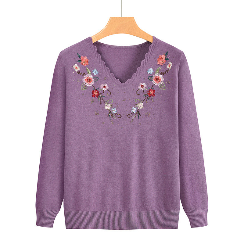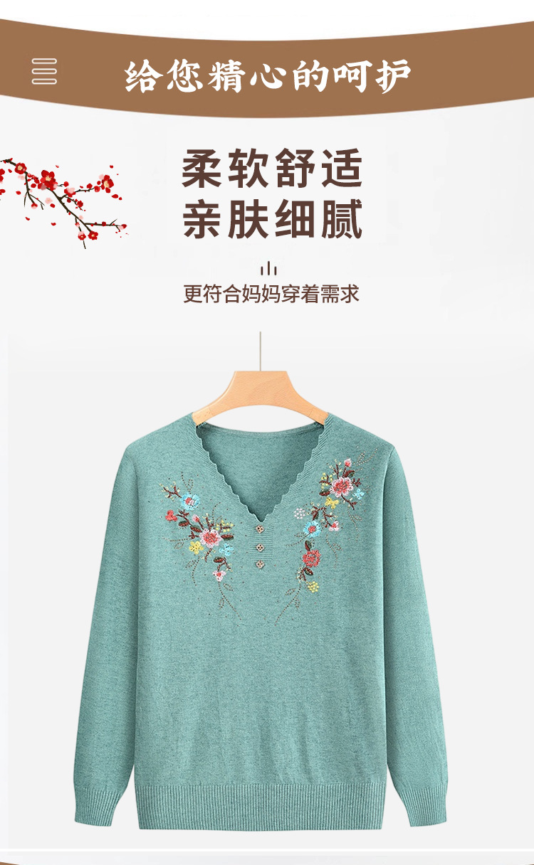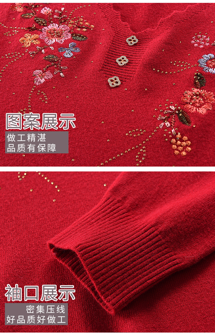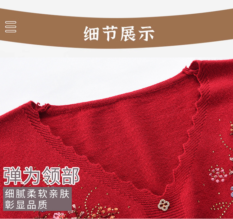 源头工厂洋气妈妈装领绣花针织衫春秋毛衣新款中老年女长袖打底衫