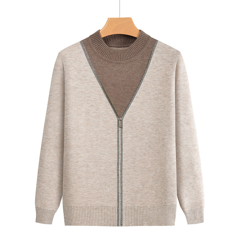源工場製 父親向け 冬用ニットセーター メンズ 中高年向けセーター 裏起毛 厚手 ベースレイヤー ポケット付きトップス