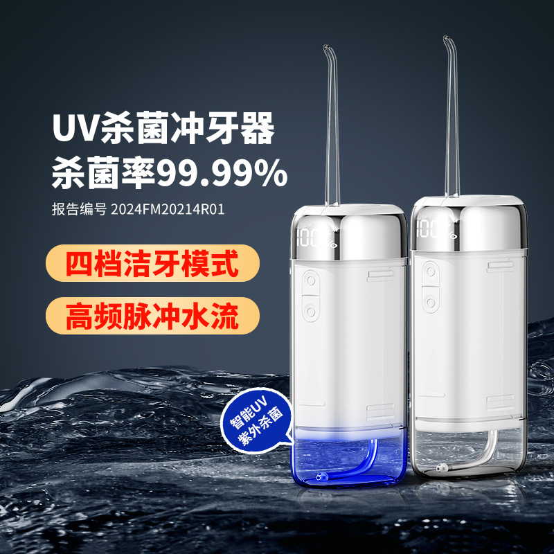 新款uv光杀菌便携式电动冲牙器口腔清洁家用洗牙器抽拉式冲洗器