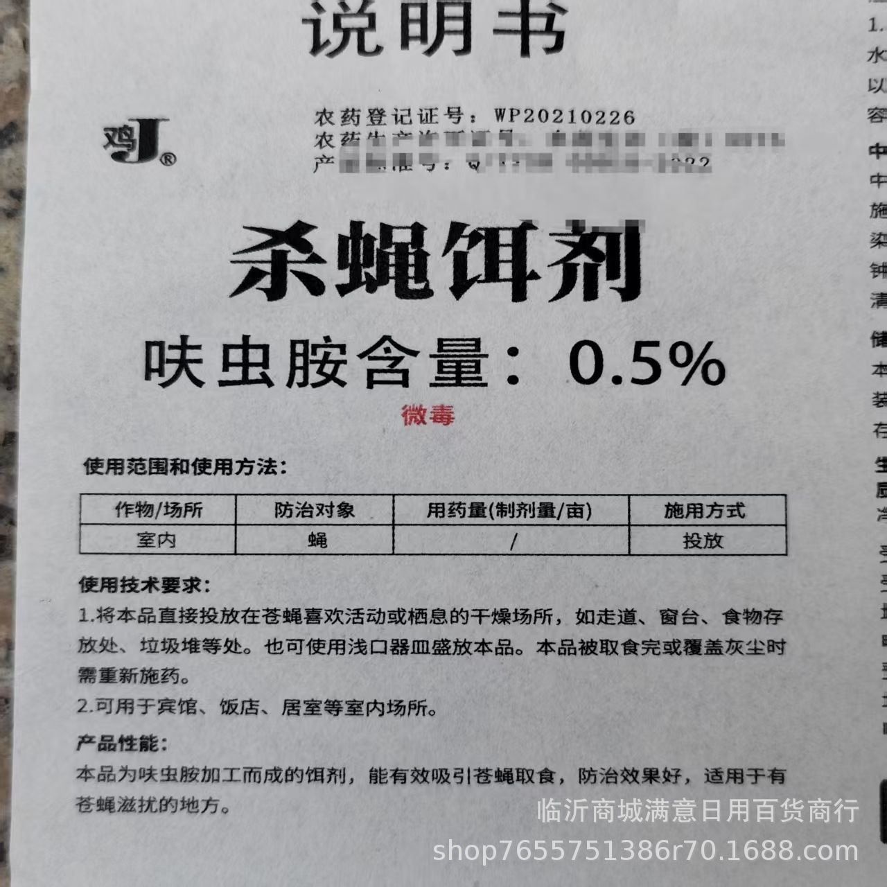 产品介绍:鸡牌杀蝇饵剂、 整箱24盒、每盒25袋、600袋/箱、每袋2.5g装。