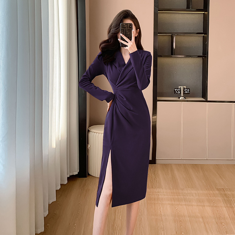 西服领气质高级感连衣裙女2025秋季新款收腰显瘦时尚开叉裙潮代发