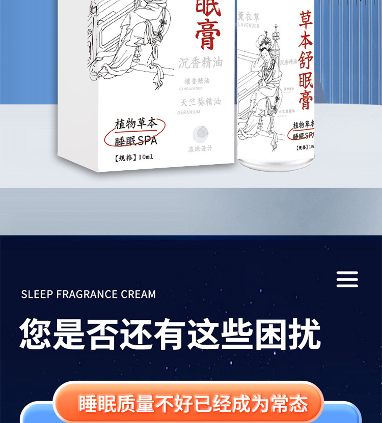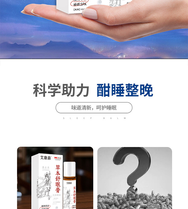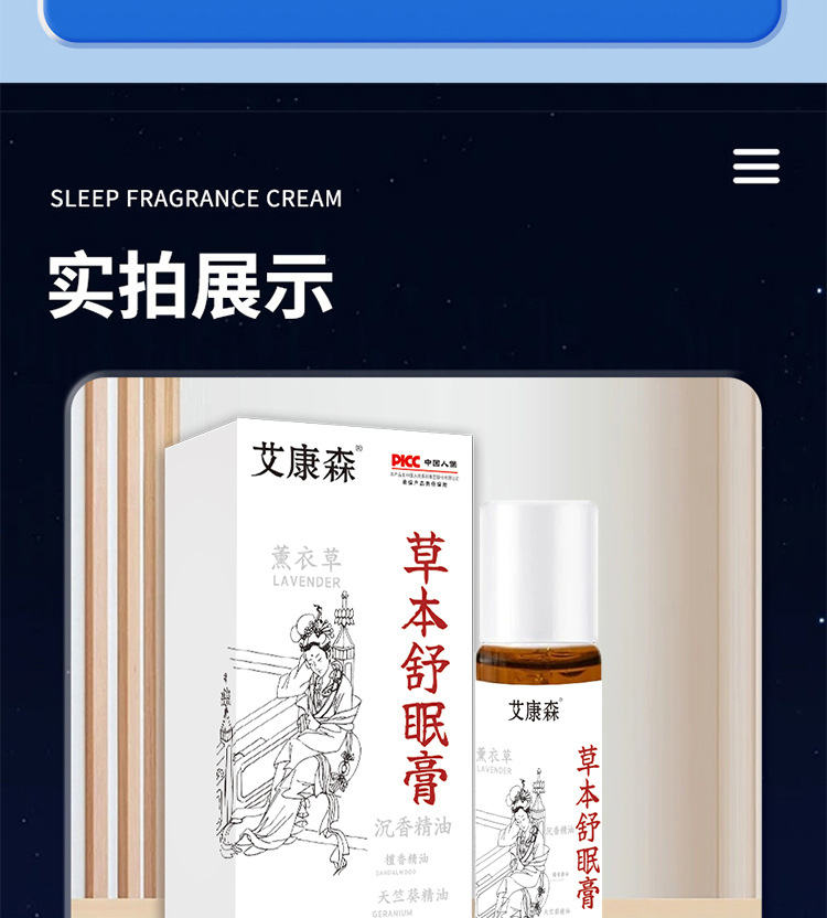 睡眠香膏草本香膏安神膏舒缓睡眠固体精油保健膏
