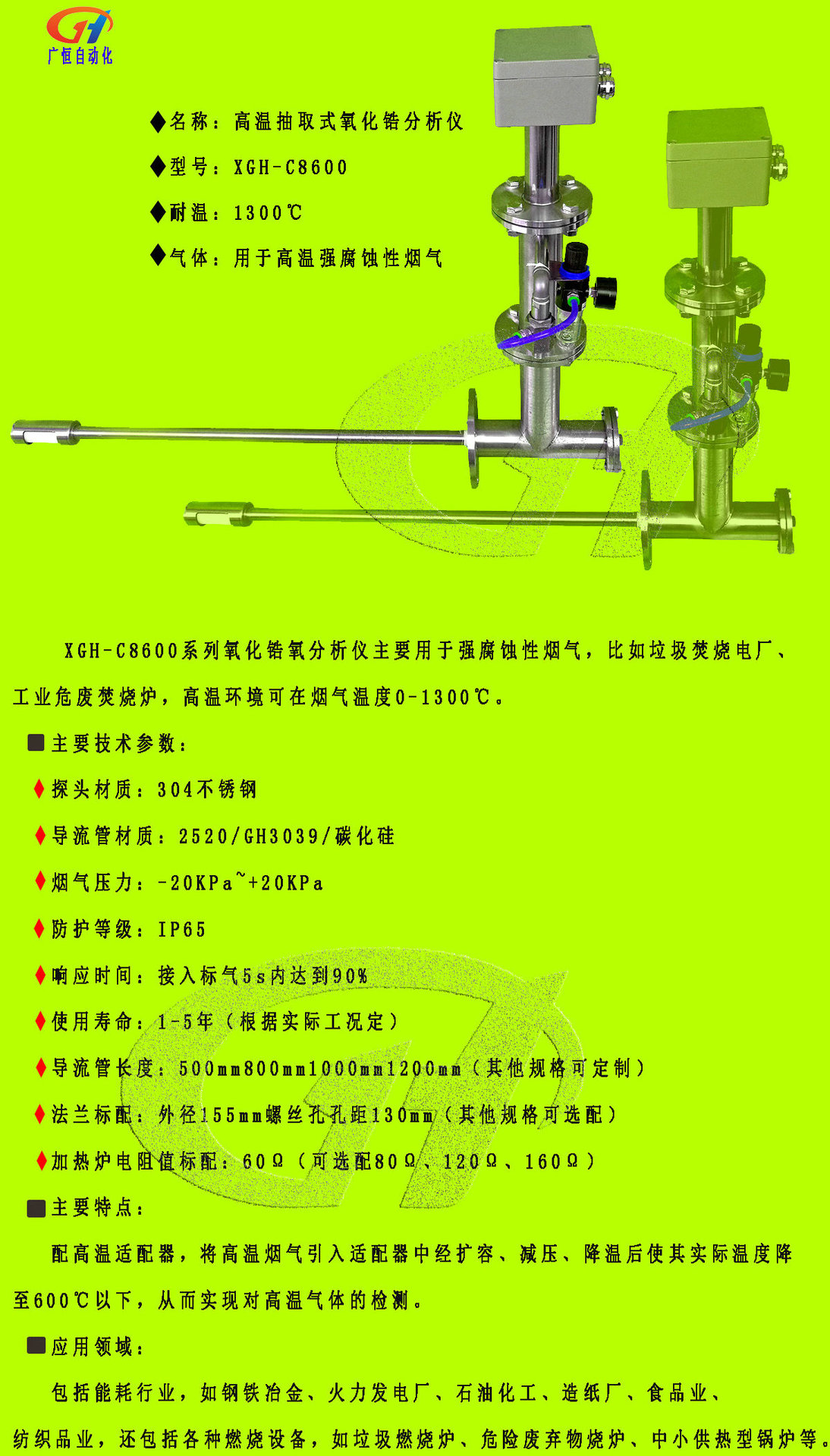 1300度高温排気式ジルコニア酸素分析計 煙道排ガス検査