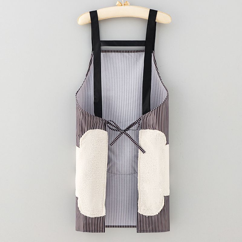 新型エプロン防水竹節綿通気性家庭用キッチン男性作業服ファッション女性ネット赤料理出勤ウエスト