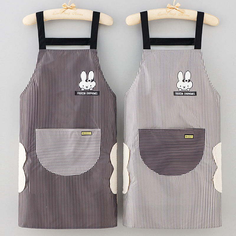 新型エプロン女性防水防油キッチン家庭料理通気防汚ファッションアニメレストランウエスト作業服
