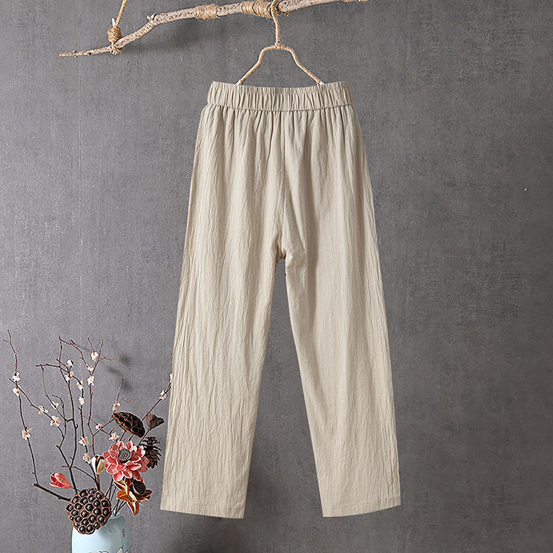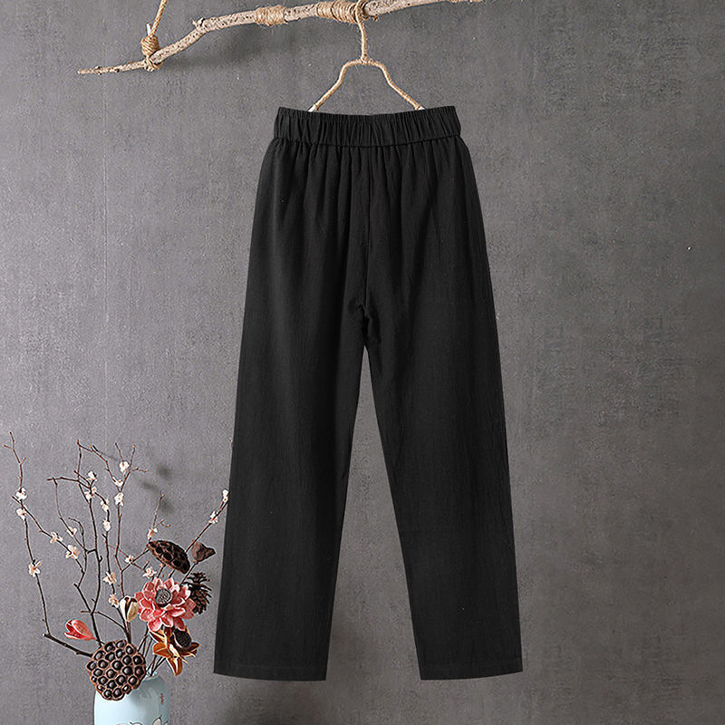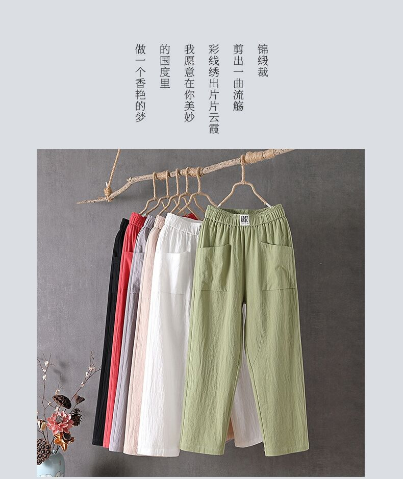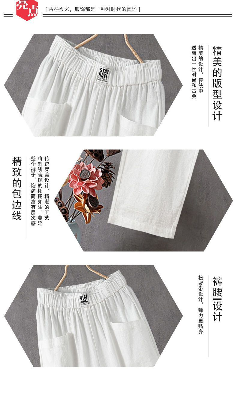 綿とリネンのブルマレディース夏の新しい9点パンツ文学カジュアルルーズレギンス多用途ハーレムパンツ