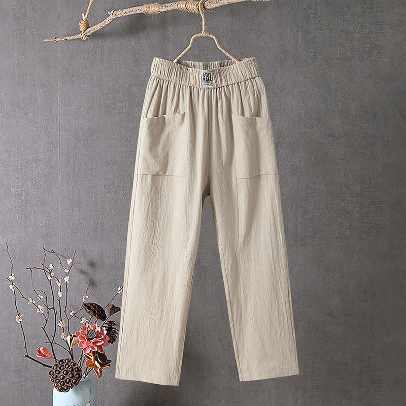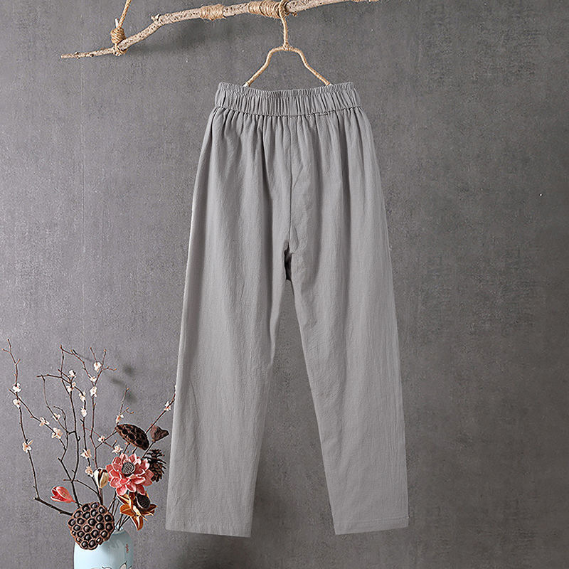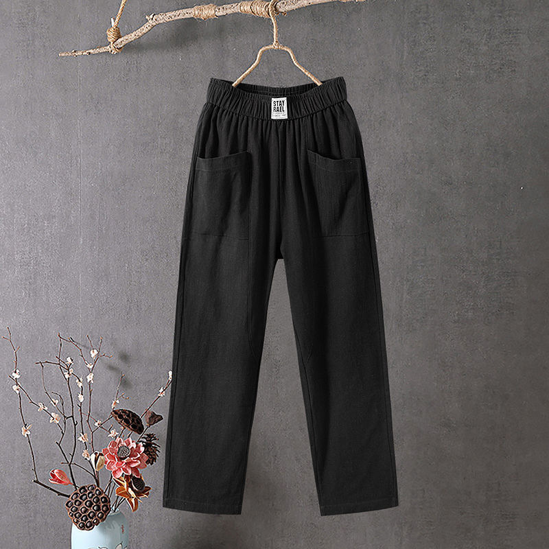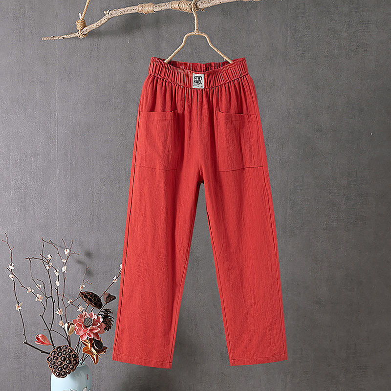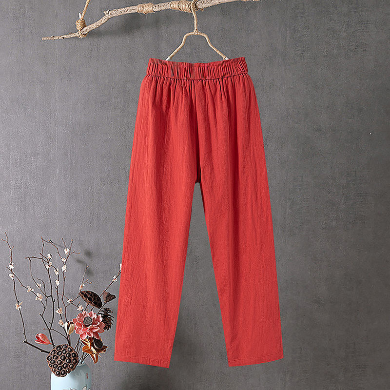 綿とリネンのブルマレディース夏の新しい9点パンツ文学カジュアルルーズレギンス多用途ハーレムパンツ