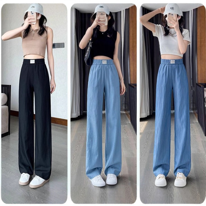 テンセル 2025 サマーパンツ レディース アイスシルク ジーンズ カジュアル ナロー エラスティック ウエスト ドレープ 快適 薄手
