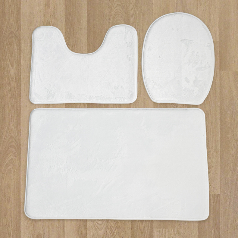 跨境法兰绒地垫马桶三件套白坯卫生间地垫防滑吸水马桶U型脚垫子