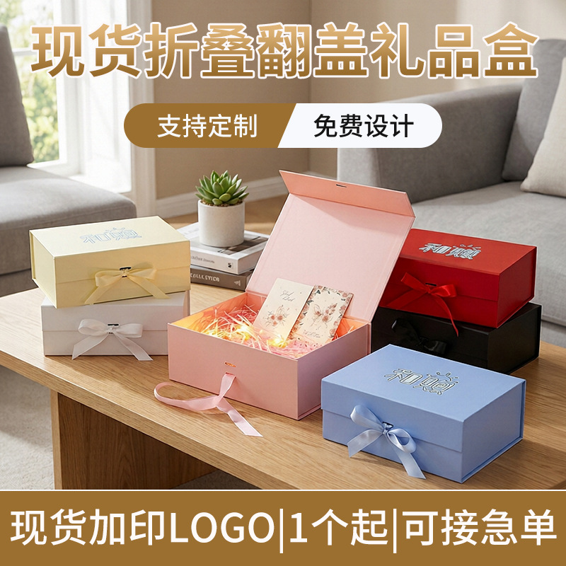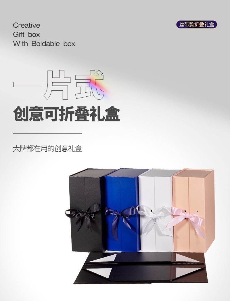 リボン折りたたみボックス卸売磁気フリップ折りたたみギフトボックスリボンリボンワンピース折りたたみボックス在庫あり