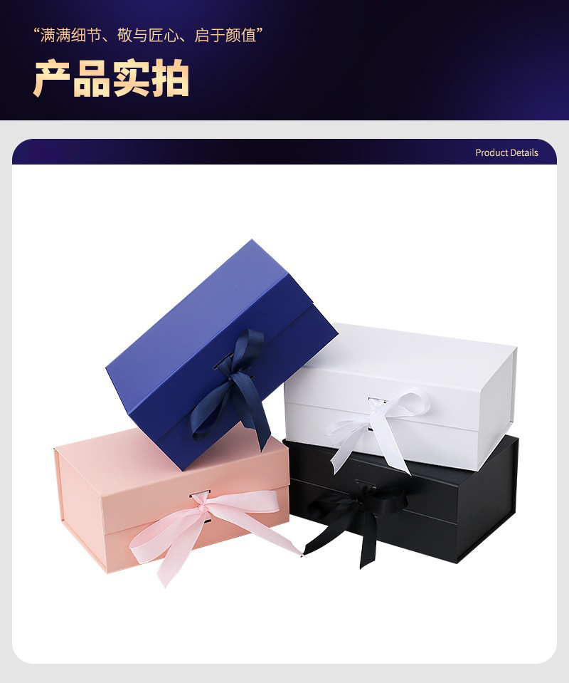 クロスボーダーリボンスタイル折りたたみボックス卸売磁気フリップソリッドカラーワンピースギフトボックス外国貿易弓折りたたみギフトボックス